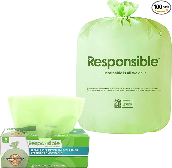 Kitchen Bin Liners, Certified Compostable, Heavy Duty Multipurpose Food Scrap Bags, Made from Compostable Materials (8 Gallon, 8 Gallon (20 Count))
