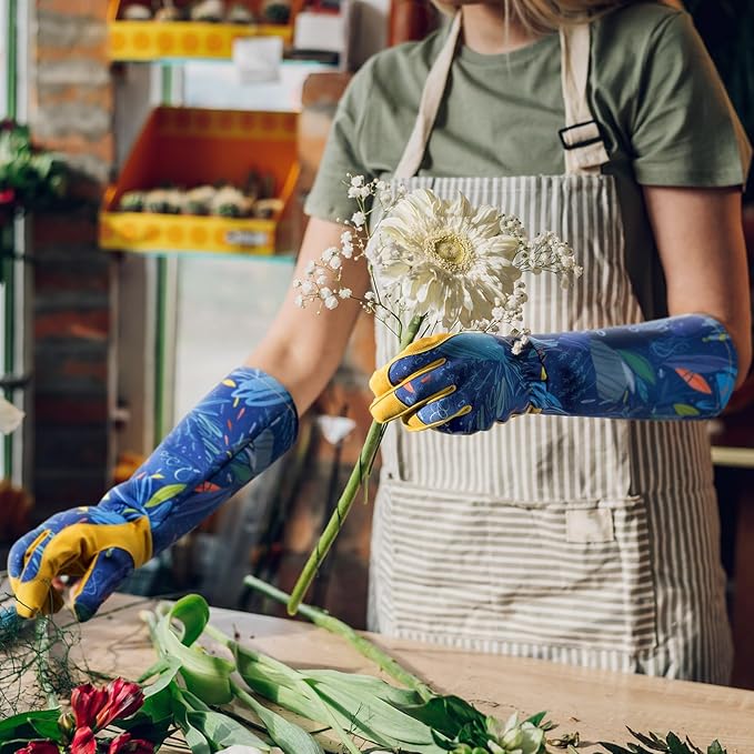 • Keep Your Hands Safe: Working in the garden can be tough on the hands, but our gloves are made with sturdy synthetic leather on the palms and fingertips to provide protection against cuts, scrapes, and blisters. The elbow-length gauntlet cuff also protects your forearms, while the extended elastic cuff ensures a secure fit around the wrist