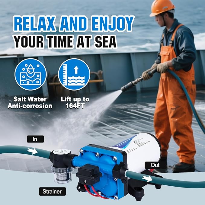 • Easy to install and quiet.The water pressure pump can be used in boat, camper, marine, trailer, sprayer scenes