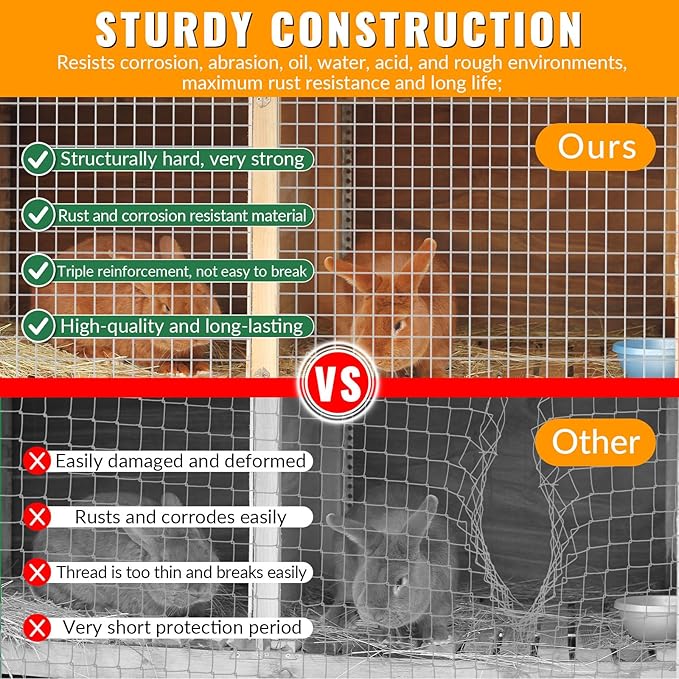 • 【Safety Sturdiness】heavy duty 19 gauge galvanized steel wire,Sturdy construction,Wider weave not too stiff, Galvanizing after welding to ensure that all welding points are galvanized for maximum rust resistance,abrasion, oil, water, acid, and rough environments.