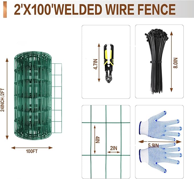 • Welded Wire Mesh Roll: This welded wire fence size is 2 ft x 100 ft and comes in a roll format, allowing you to customize its length according to your specific needs. Whether you need a short section for a small flower bed or a longer stretch to enclose an entire yard, the flexible nature of this welded wire mesh roll ensures a seamless and professional-looking installation.