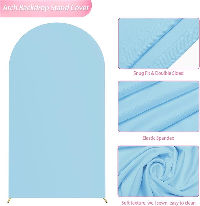 • 【Arch Backdrop Stand and Covers Package】Package contains 1pcs wedding arch stand and 1pcs arch cover. Size: 7.2x4ft(HxW). Material: metal arch backdrop stand and spandex arch cover. Color: Dusty Blue arch cover and gold wedding arch stand. Decorate your party with our gold arch stand and arch covers to create an epic decor for your celebration.