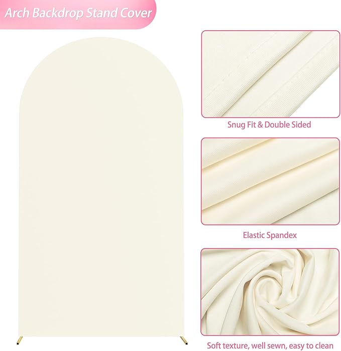 • 【Arch Backdrop Stand and Covers Package】Package contains 1pcs wedding arch stand and 1pcs arch cover. Size: 7.2x4ft(HxW). Material: metal arch backdrop stand and spandex arch cover. Color: Ivory arch cover and gold wedding arch stand. Decorate your party with our gold arch stand and arch covers to create an epic decor for your celebration.