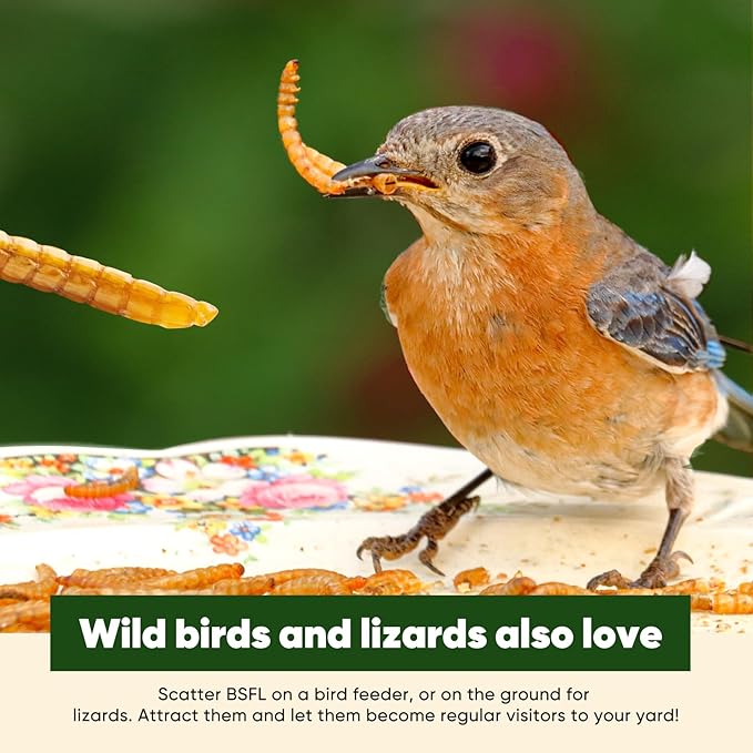 • Convenient Package & Storage - The BSFL mealworms are packed by a sealed bag, so you can zip it up after wrapping it. A thick carton outside the bag so the BSFL meal worms won’t be squeezed. After using, please just seal the bag and settle it in a dry place for 24 months validity.