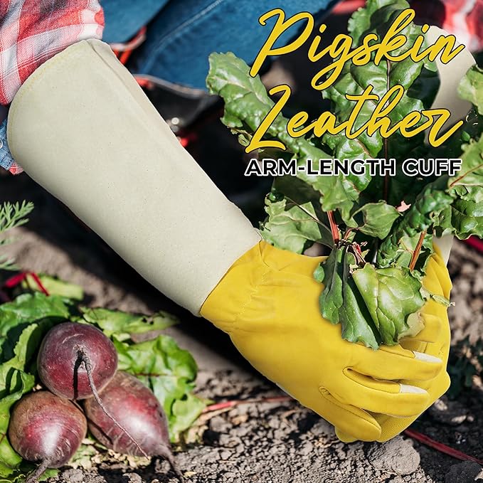 HANDLANDY Rose Pruning Gardening Gloves for Men Women, Thorn Proof Forearm Protection Leather Garden Gloves, Gardening Gifts for Gardeners (Yellow- goatskin, Small (Pack of 1))