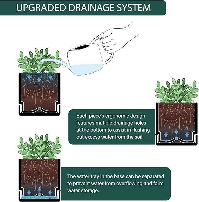 Excellent Drainage and Tray: The pot features strategically placed drainage holes at the bottom, along with detachable saucers that fit perfectly. This ensures optimal drainage for your herbs, making it ideal for window herb gardens.