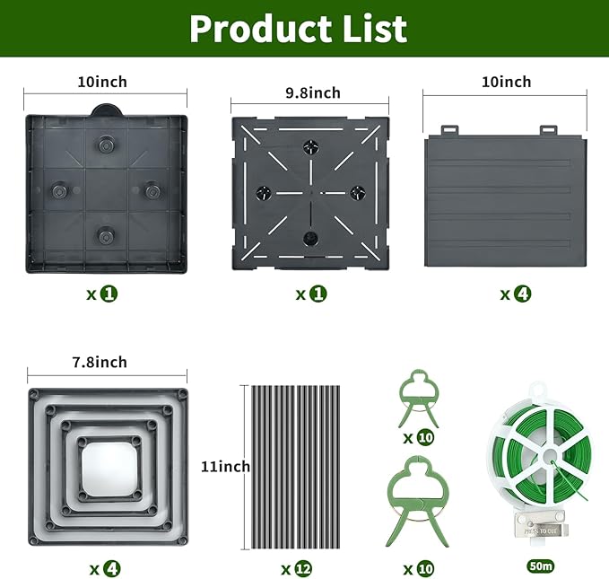 • 【ADJUSTABLE HEIGHT】- The connecting rods can be used at the connecting corner of each side panel to have higher height. Total 16 pieces connect rods allows you to create planter raised beds with 4 different heights, enough to meet the growing needs of normal vine plants and vegetables, allowing plants to stretch their branches meanwhile have more area exposed under sunshine. Grow better, more fruits in the future.