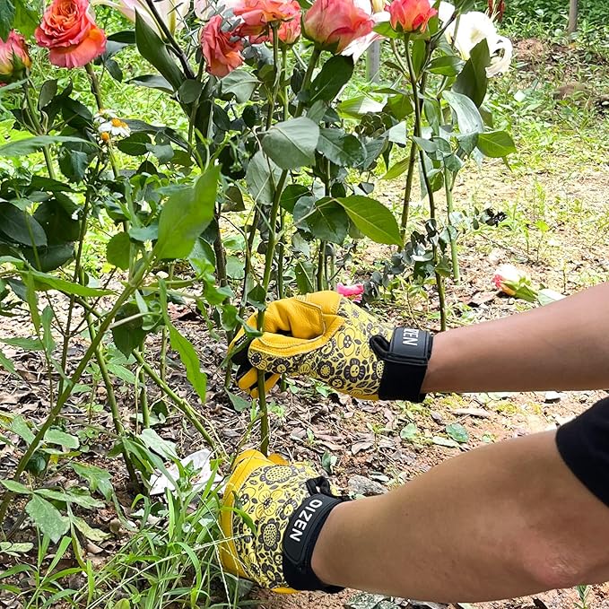 • Crafted for Durability: This gardening glove is made of carefully selected grain cowhide to ensure abrasion resistance, which is not only thick but also soft and flexible with moderate oil resistance, puncture resistance and cut resistance. The back of the hand is made of elastic, breathable and sweat-absorbing material, which can keep our hands dry and easily complete all works in the garden.