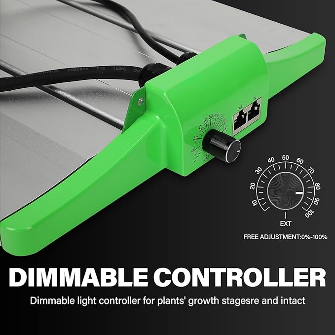 • FLEXIBLE CONTROL DAISY CHAIN: Dimmable range is 0-100% grow light for 2x4 tent, supports PWM and 0-10V control, slow knob required due to delay, and RJ45 port can eliminate the need for a master controller.