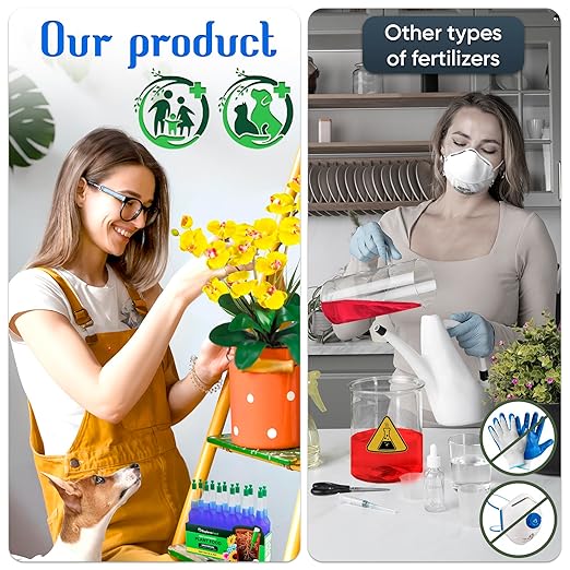 • βœ… THE EASIEST WAY TO FEED YOUR PLANTS β€” Forget messy mixing and measuring! Simply snip the tip and insert the pre-measured bottle into the soil. Our self-feeding fertilizer does the rest, delivering perfectly balanced nutrients directly to the roots for up to 15 days.