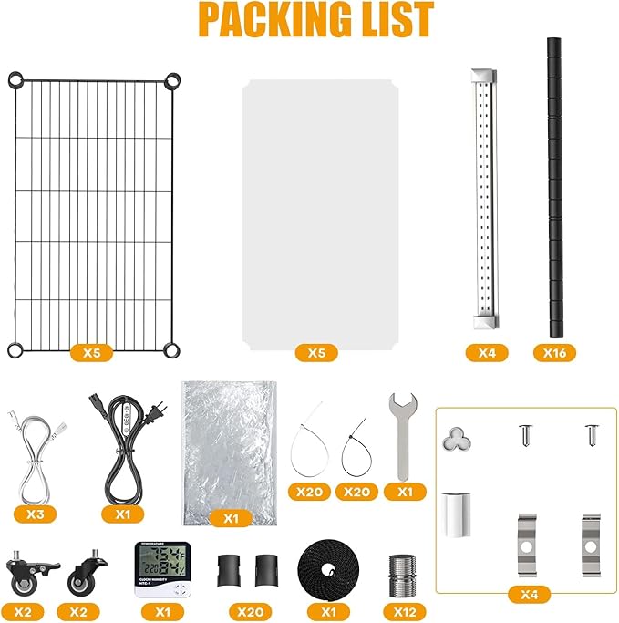 • 5-Tier Construction: The greenhouse cabinet features 5 adjustable-height layers, with overall dimensions of 15.7'' L x 11.8'' W x 62.3'' H and high bearing capability.Great size to work for a 10" X 20" seed tray. Perfect for seed starting and for displaying