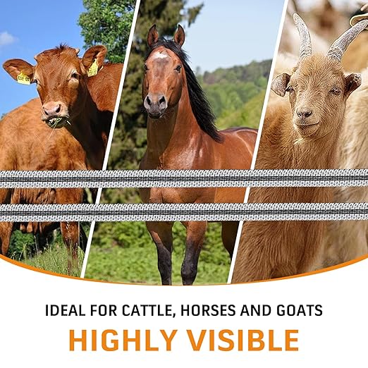 • This horse fence tape is compatible with all electric fence insulators, reels, posts, ideal to be used as guarding fence for horses, as a electric fencing set up, rotational grazing fence, equine fence kit, etc