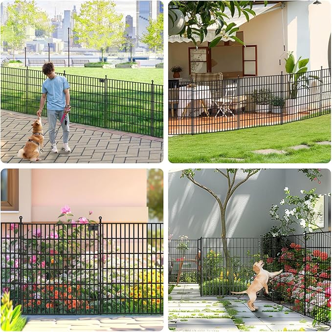 • 【Flexible & Versatile Styling】The dog fence outdoor for yard can be freely added or removed to form any shape you want, such as rectangle, square, round, which can be used to decorate your yard, garden and pathway. The no dig iron fence can meet any of your garden needs.