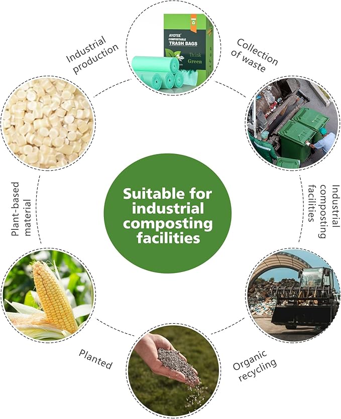 • 【Eco-Friendly】- Our kitchen compost bags are primarily made from plant starch extract (PSM), complying with ASTM D 6400 and EN13432 compostable certification standards. 3 gallon trash bags not suitable for backyard composting, they swiftly degrade in municipal industrial composting facilities (maintained at a constant 50-60℃), mitigating environmental harm.