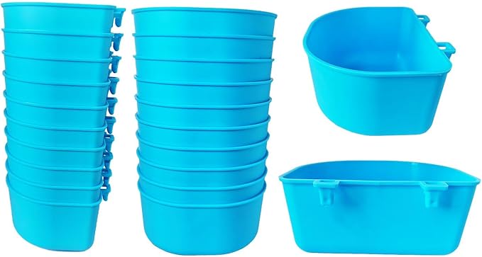 • 【Package】20 Pcs 25 fl.oz chicken feeder cups with holders. The replacement food bowl is suitable for use on wire cages, cat kennel travel carrier cage,show cage,coop corner.