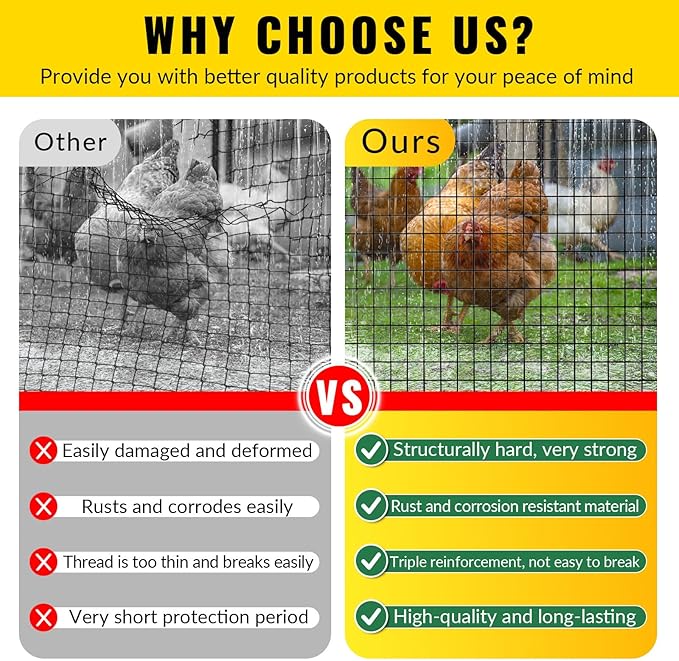 • 【Wide Application】-pvc coated wire mesh Dozens of uses,suitable for various home improvement projects, Ideal for making chicken wire fencing,plastic chicken wire,chain link fence,chicken coop,poultry cage,Animal Control,Gutter Guard,etc.