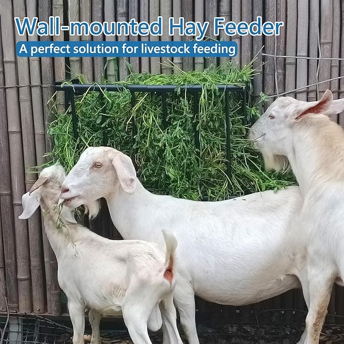 • Thoughtful Design: This goat hay rack is multiple sided, ensuring a spacious eating space. Large openings make your livestocks have an unhindered eating. 5 goats can eat at the same time.