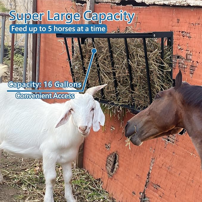 • Thoughtful Design: This goat hay rack is multiple sided, ensuring a spacious eating space. Large openings make your livestocks have an unhindered eating. 5 goats can eat at the same time.