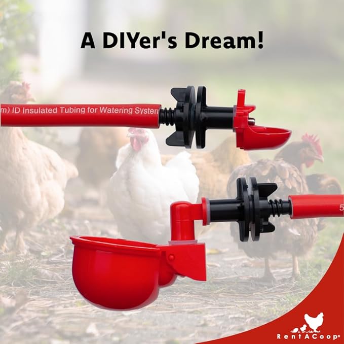 RentACoop DIY Sip Station Watering System –Includes Tubing, Horizontal Nipples, Auto-Fill Cups, Tubing Adaptors, T-Connectors, and 11mm Drill Bit – Great for Poultry (DIY Starter Kit for Poultry)