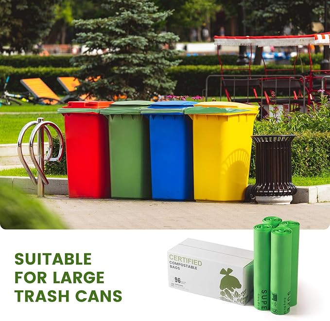 • Product Information: SUPERBIO compostable yard waste bags, 96 gallon bulk package,40 bags. 61 in x 68 in x 1.57 mil