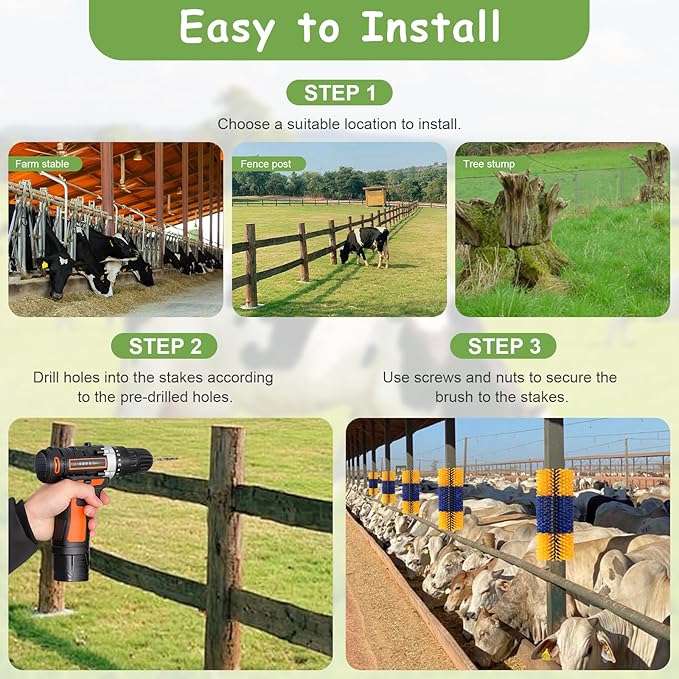 • 🐴Easy to install/disassemble, This goat brushes for grooming includes 1 brush and 4 screws. It can be installed in barns, pastures, livestock fences, horse sheds, trees, walls, or anywhere outdoors, and it is also easy to dismantle if you need to demolish it.