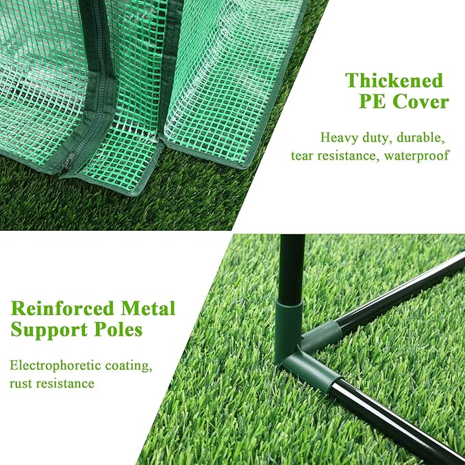 • Durable Material: Our greenhouses for outdoors features durable steel frame ensures longevity, and thick tear-resistant PE plant cover that provides special temperature and other growing condition for plants