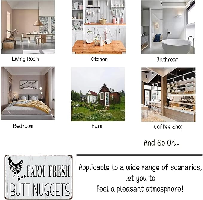 • NOVELTY SIGN: This Funny Chicken Tin Sign Is Perfect For Decorating Your Home, Farmhouse, Chicken Coop, Kicthen, Garden Or Any Other Space. It Features A Vibrant And Eye-Catching Design That Will Surely Bring A Smile To Your Face And Add A Touch Of Humor To Your Decor.