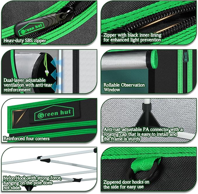 • LIGHT PROOF --- The large heavy duty Zippers & 1.5" ribbon protect the tent from light leaking and ensure durability and long-lasting use. Let you control the climate and lighting so you can grow any plant in any place safely and easily