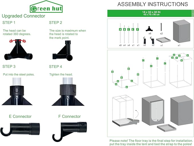 • EASY ASSEMBLY --- Our grow tents are easy to install with an instructional manual. This is a great hydroponics growing kit system starter, whether you want to set up your indoor garden in an apartment, condominium, greenhouse, or any rented space