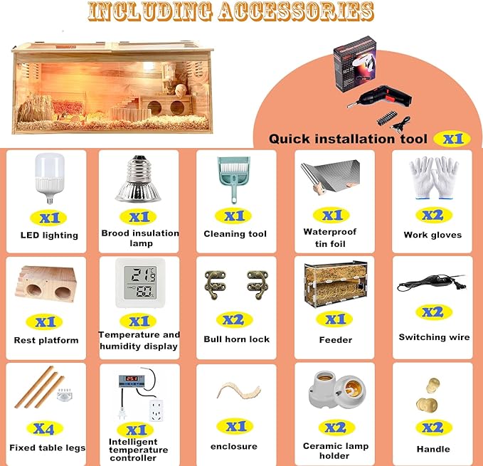 • 【Comprehensive Accessory Combinations】: To save you time and effort, It comes with quick installation tools as well as detailed installation instructions we provide various accessories along with our baby chick starter kit. These include a heating lamp, 2 types of thermometers, a food feeder, a baby lounge fence, a temperature controller, and waterproof stickers. With these comprehensive accessory combinations, you don't have to spend additional time and money purchasing accessories separately