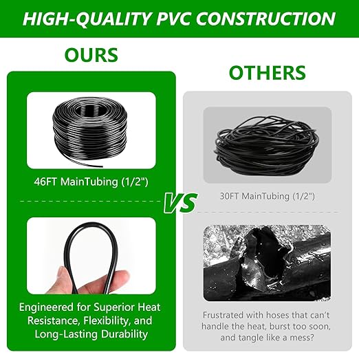 • Wide Applications: New drip irrigation kit is great for lawn irrigation, patio, garden, vegetable irrigation, roof cooling, agriculture, flower beds, plant greenhouse, swimming pool mist cooling irrigation, raised bed, etc