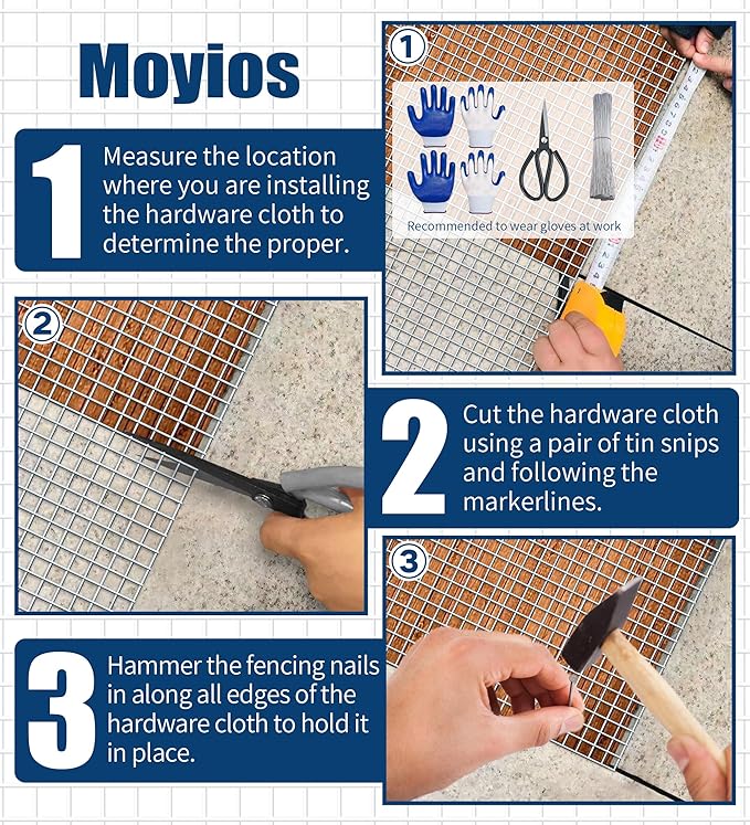 • 【Hardware Cloth Widely used】Our hot-dip galvanized hardware cloth is suitable for chicken wire fences or other poultry fences, rabbit/cat/dog fences, backyard snake, voles, gophers and raccoons protection fences, garden flower beds, orchard tree protection boards, soil screens, balcony protection, gutters, eaves, gutter guardrails, home decoration works, handicrafts making, etc.