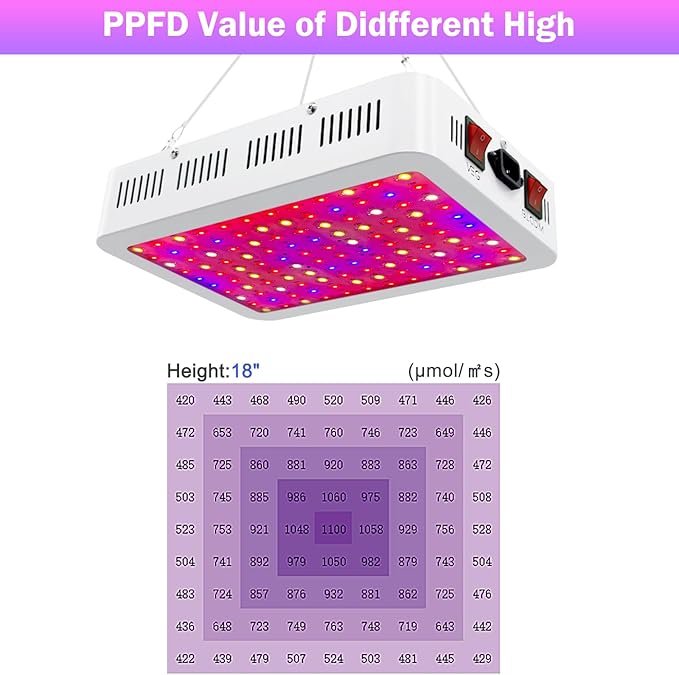 • Veg & Bloom Switch: Through a wide plant growth testing, the Veg and Bloom switch, which designed to provide proper light for plants in different growth stages to greatly increase your harvest. Veg switch is the blue LED and white LED designed for seed or seedling growth; Bloom switch is the red LED and white LED designed for flowering/blooming; Both Veg and Bloom switches can for maximum per formance to plants.