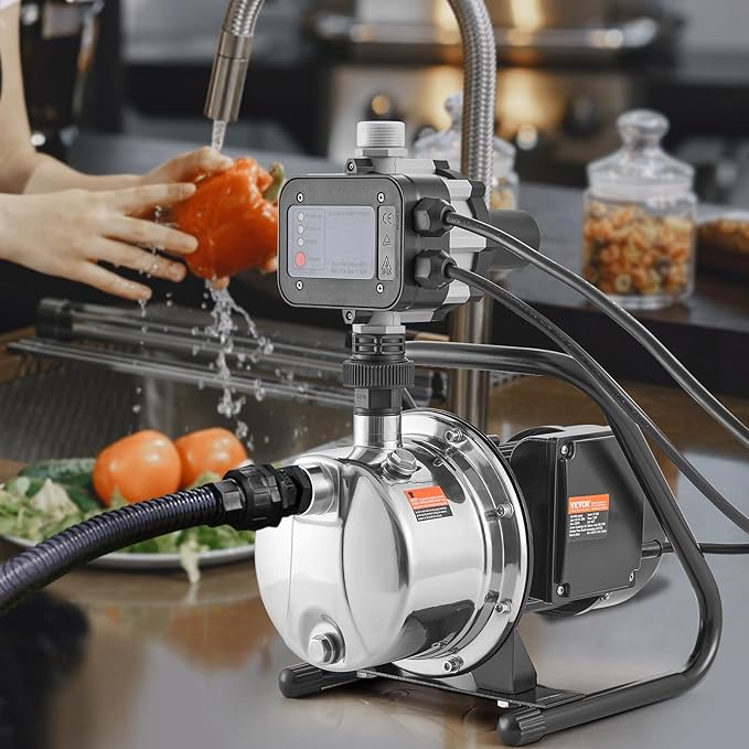 VEVOR 1HP Shallow Well Pump Portable, 1380 GPH Garden Jet Pump with Automatic Controller, 145 ft Head Stainless Steel Sprinkler Booster Pumps, for Garden Lawn Irrigation System, Water Transfer