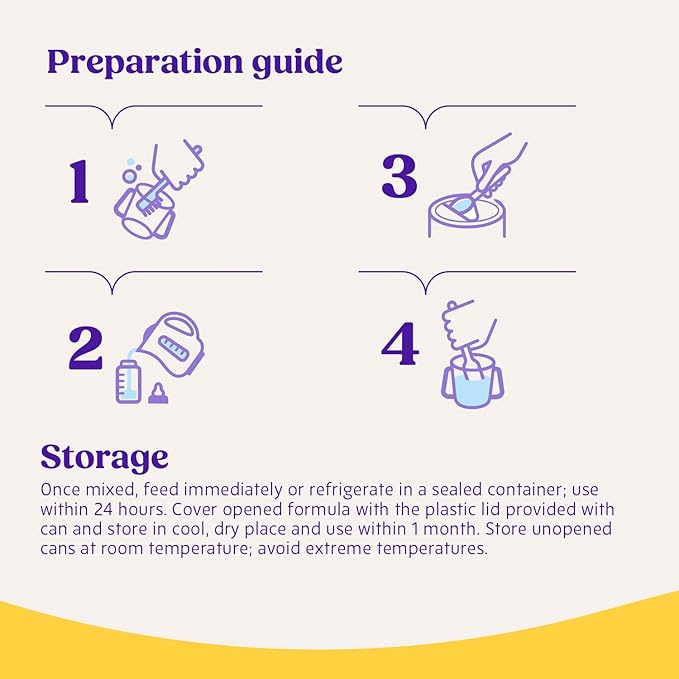 • PREPARATION: Wash hands, cup & utensils before preparing drink. To make 1 serving, add 3 level scoops of powder to 6 fl oz of warm water into a clean cup. Stir, whisk, or shake until powder dissolves. Test temp (lukewarm not hot), on wrist before serving