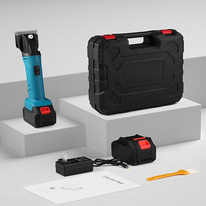 • 🐴【4H Long-Lasting Battery Life】The biggest highlight of this cordless horse clipper is long-lasting, specially equipped with a spare battery, which means no need to worry about power outage when working outdoors.With 2 batteries, it can work continuously for up to 4 hours, which is enough to deal with shaving 5 horses easily.