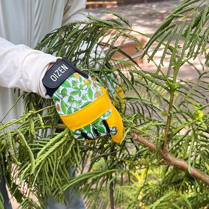 • Crafted for Durability: This gardening glove is made of carefully selected grain cowhide to ensure abrasion resistance, which is not only thick but also soft and flexible with moderate oil resistance, puncture resistance and cut resistance. The back of the hand is made of elastic, breathable and sweat-absorbing material, which can keep our hands dry and easily complete all works in the garden.