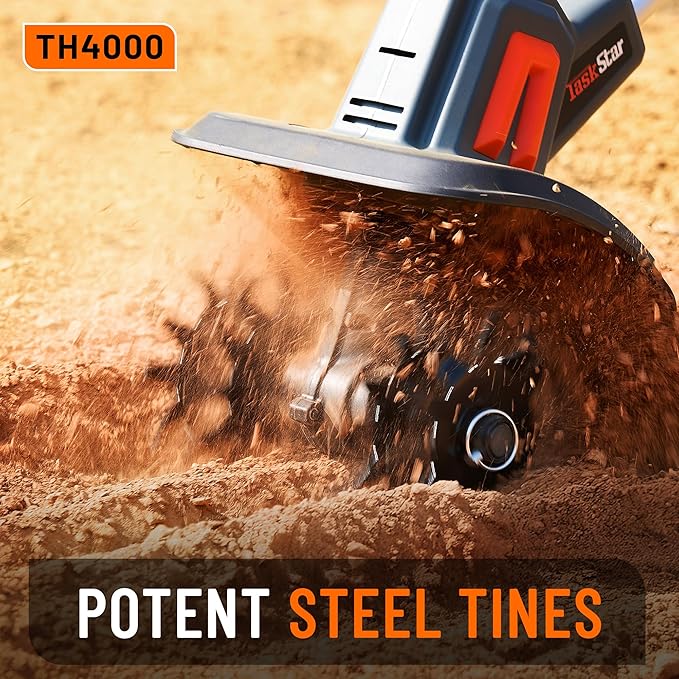 • TaskStar Fantastic Garden Gift for Your Loved Ones: TaskStar Next-Generation Exclusive electric tiller perfect for breaking ground, tending soil, mixing compost, and aerating gardens. 100% Suitable for both beginners and experienced gardeners