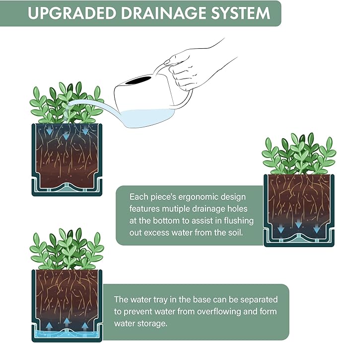 Excellent Drainage and Tray: The pot features strategically placed drainage holes at the bottom, along with detachable saucers that fit perfectly. This ensures optimal drainage for your herbs, making it ideal for window herb gardens.