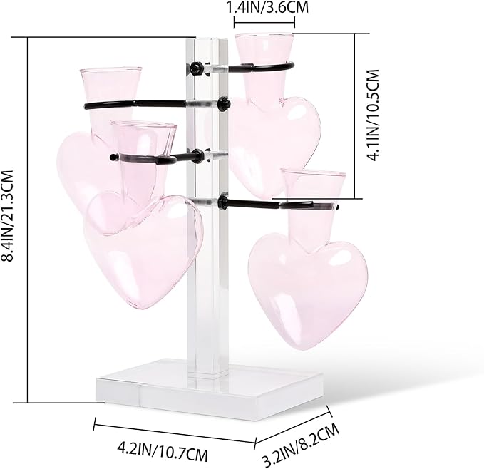 Clear Plants Propagation Stations Terrarium Kit Birthday Gift for Women for Indoor Home Office Decor Acrylic Plant Accessories - 4 Love Hear Vase