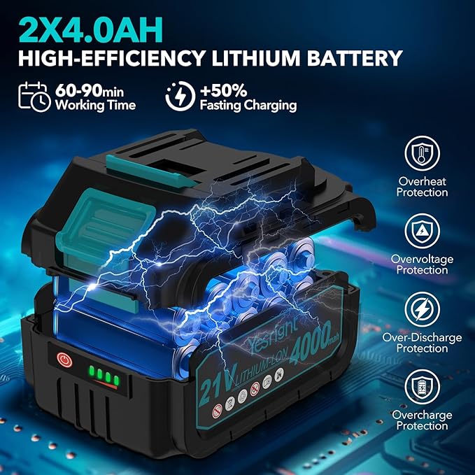 • 2X4.0AH HIGH CAPACITY BATTERIES: Small Handheld Chainsaw is equipped with 2 x 21V 4000mAh rechargeable lithium batterys, which allow the chainsaw to run continuously, reducing the need for frequent battery replacements and improving work efficiency. The pruning chainsaw helps you get rid of the power cord, easy to carry, widely used in garden, farm, park, forest, pasture, orchard and greenhouse
