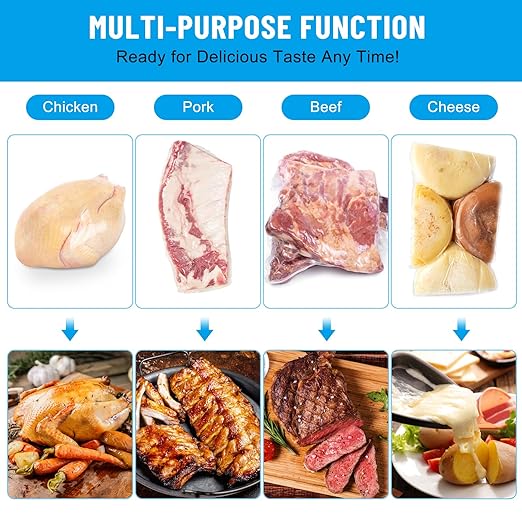 • Keep Food Fresh Longer: Extends food fresh 3-5 times longer, perfect for wrapping the poultry. Transparent heat shrinkable bags can store a variety of food, such as chicken, rabbit, duck, goose, beef, fish, ham, turkey and other meats