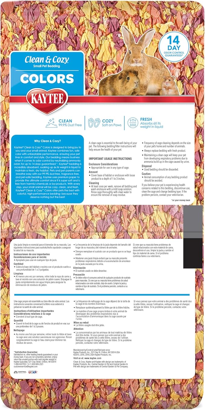 • MAKE YOUR PET’S HABITAT FUN with vibrant animal bedding. Kaytee Clean & Cozy Colors are available in multiple options to match your aesthetic and help you create a stylish habitat for your pet.