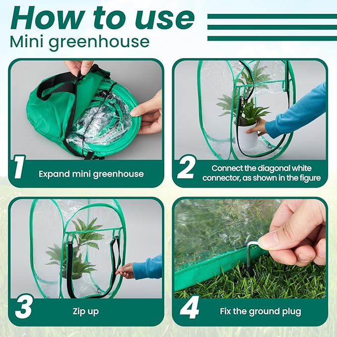 • Quality Material: our mini greenhouse is crafted with durable PVC material which is not only clear for optimal sunlight but also stands up to harsh weather, ensuring longevity and reliability; We also give you a green storage bag for your convenience