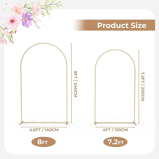 Babenest Gold Arch Backdrop Stand Set of 2, 7.2FT/8FT Metal Arch Wedding Stand, Balloon Arch Frame for Ceremony Birthday Party Bridal Baby Shower Halloween Banquet Decoration
