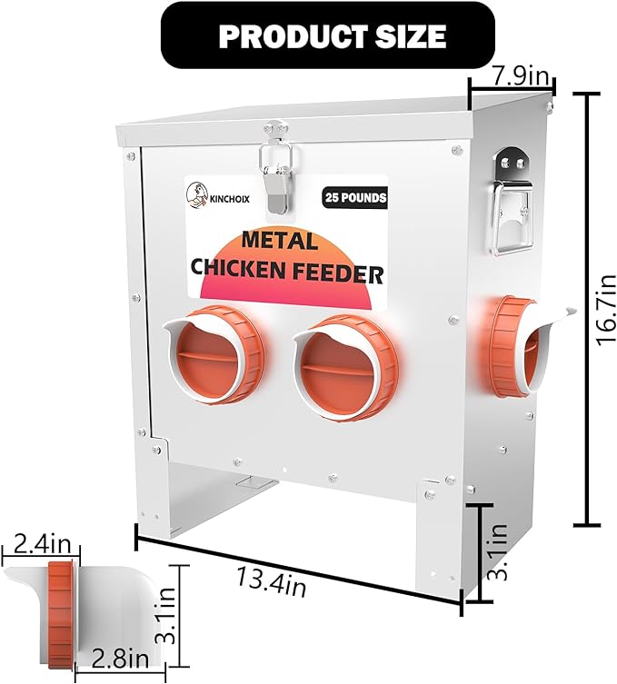 • Secure Lid: The hinged lid securely fastens to the feeding box, keeping the feed protected from pests and contaminants, ensuring the health and well-being of your chickens.