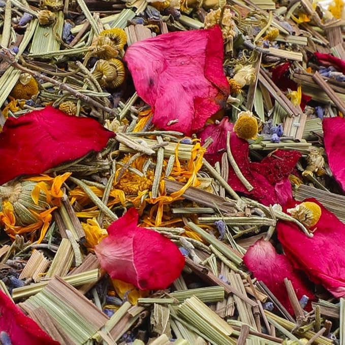 • Rich Herb Fusion: Our chicken coop nesting herbs combine seven unique dried flowers: lavender, rose, chamomile, mint, calendula, rosemary, and lemongrass. They emit a fresh fragrance, reducing stress and soothing laying hens