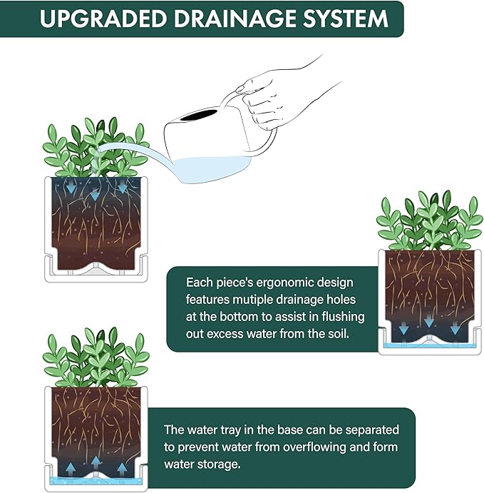 Excellent Drainage and Tray: The pot features strategically placed drainage holes at the bottom, along with detachable saucers that fit perfectly. This ensures optimal drainage for your herbs, making it ideal for window herb gardens.