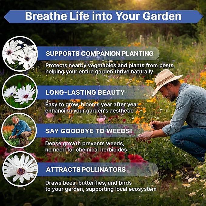 • Easy to grow - Perfect for beginners and experienced gardeners, our cape daisy seed package includes detailed tips for success in any climate or soil type. Simply scan the QR codes on the seed packet to access an online growing guide and learn how to plant and care for cape daisy flowers like a professional gardener.