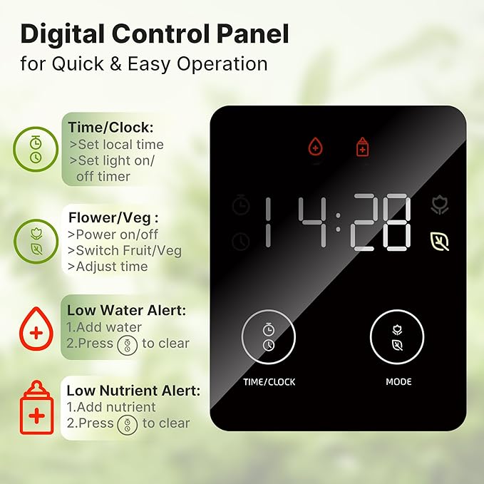 • 【Light Timer & Water Indicator】 This hydroponics growing system kit allows you to set the light start time to suit your unique growing needs. It also features water level indicators to ensure your plants stay healthy and thriving.